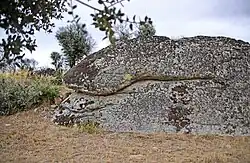 - Peña La Sierpe: antigua explotación minera de Pino del Oro que conserva un gran número de cazoletas, ya que en ellas aparece representado el triturado y lavado del mineral extraído de trincheras cercanas. En la región se conoce a través de la leyenda de la Paya de La Sierpe. Esta cuenta que un pastor alimentó con leche una cría de culebra, estos se convirtieron en amigos inseparables, pero la culebra creció y creció hasta convertirse en una Sierpe, el pastor se sintió amenazado y tuvo que marchar, como constancia de su antigua amistad el pastor labró la figura de la Sierpe en la visera de la Paya.[6]