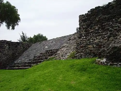 La zona tiene una extensión de una hectárea. Solo quedan unas pocas estructuras, un área habitacional (fase Azteca III) y uno de los palacios de gobierno. Los españoles, destruyeron los edificios y la ciudad, construyeron sus capillas.[3]