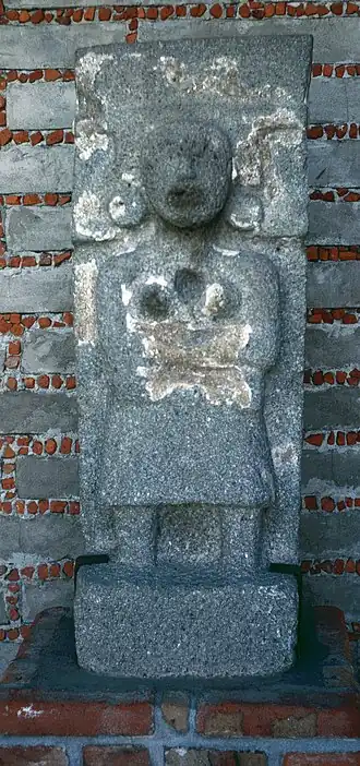 Se encontró una escultura de piedra de Xipe Tótec. Existe una asociación entre el altar circular y una piedra llamada Temalacatl encontrada. Es una piedra de sacrificio, relacionada con la deidad de Xipe-Totec, en la cultura Mexica. La piedra está fragmentada (sin cabeza y pies). Se cree que la fractura fue debida a las prácticas destructivas de la cultura española.[2]