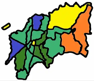 Mapas de la Ciudad de Guatemala, dividida en zonas.La Ciudad de Guatemala se divide en 22 Espacios Urbanos, llamados comúnmente Zonas. (Los números de las zonas son 1 a 25, pero las zonas 20, 22, y 23 no existen.) No hay que confundirlos con los Departamentos de Guatemala, las entidades subnacionales en las que se divide el territorio de Guatemala,[1][2] ni tampoco con los municipios del Departamento de Guatemala. La definición de las Zonas de la ciudad está basado en un sistema de espiral que se desenvuelve en dirección opuesta a las agujas del reloj.