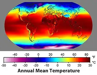 El clima está determinado por parámetros meteorológicos como temperatura, precipitación, humedad, presión y viento. Cuando se toma en cuenta sólo la temperatura se obtienen zonas definidas según los sistemas de clasificación. En el sistema de Köppen por ejemplo, se puede distinguir las siguientes zonas climáticas dependientes de su temperatura estacional: