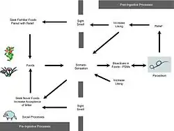 - ↑ Villalba, J.J., Provenza, F.D. and Shaw, R. (2006). «Sheep self-medicate when challenged with illness-inducing foods». Animal Behaviour 71 (5): 1131-1139. doi:10.1016/j.anbehav.2005.09.012.
