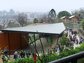 Después de llegar hasta el punto más alto del Zoo están en un amplio espacio rodeado de una laguna con gansos, especímenes de lémur de cola anillada (más adelante en el zoológico hay otra exhibición de la misma especie). Subiendo por las escaleras se verán ungulados como el camello bactriano, guanacos, ñandúes compartiendo hábitat con maras, entre otros.