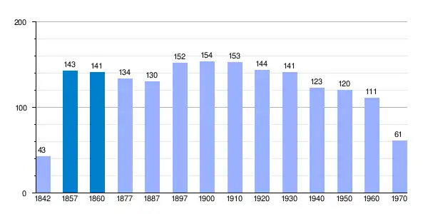 | Gráfica de evolución demográfica de Zorita de la Loma[2] entre 1842 y 1970 |