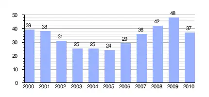 | Gráfica de evolución demográfica de Zuazu entre 2000 y 2010 |