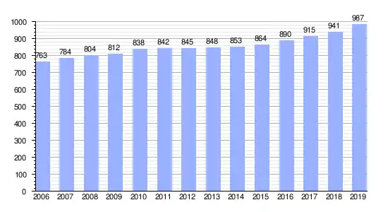 | Gráfica de evolución demográfica de Zudausques entre 2006 y 2019 |