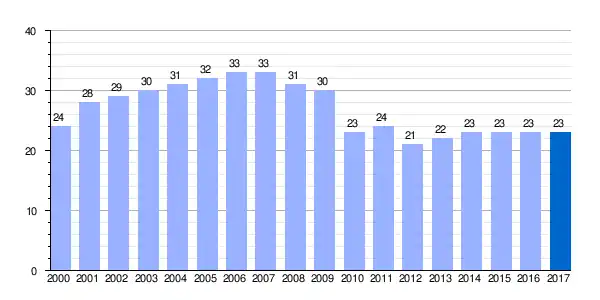 | Gráfica de evolución demográfica de Zudubiarte[1] entre 2000 y 2017 |