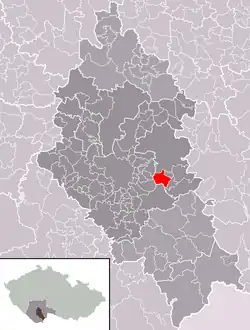 Se encuentra ubicada en el centro-sur de la región, en la zona de la selva de Bohemia, a poca distancia al sur de la ciudad de Praga, de la orilla del río Moldava —el más largo del país, afluente del río Elba— y al norte de la frontera con Austria.[1]