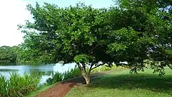 Es una especie común, en los márgenes de los ríos, en la zona atlántica; a una altitud de 0–50 m; desde el sureste de México a Sudamérica (Amazonia) y norte de Bolivia. Es característica por sus peciólulos casi negros y la nervadura inequilátera de la base de los folíolos.[1]